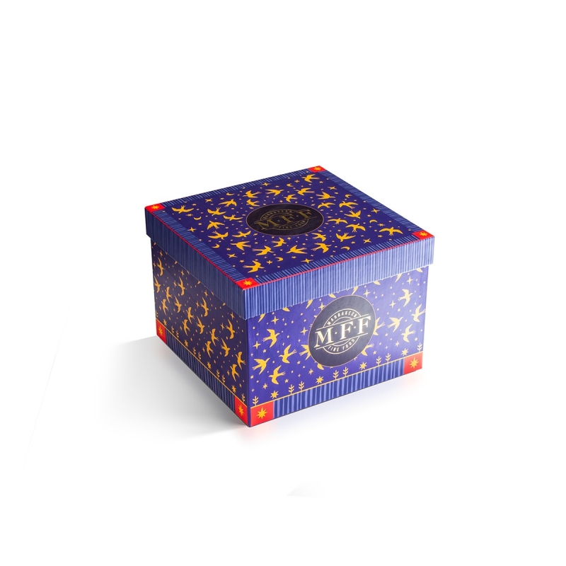 A vibrant, colorful pyramid-shaped box inspired by the patterns and festive spirit of Africa. Designed as an elegant case, it allows each client to create their own personalized selection of MFF delicacies—whether for gifting or indulging. Available in three harmonious formats, which can be ordered together or separately, this box celebrates creativity, generosity, and the joyful warmth of festive moments. An exceptional piece that brings a welcoming and refined touch to every occasion.