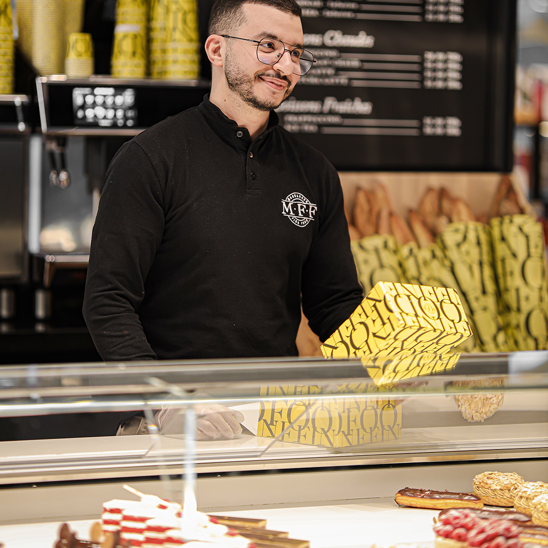 Located in the Almazar mall, opposite the Carrefour checkout, this 30 m² stand offers a pleasant experience with a retail section, as well as pastries and bakery products. A counter is also available for all ice, hot, and latte drinks preparations.